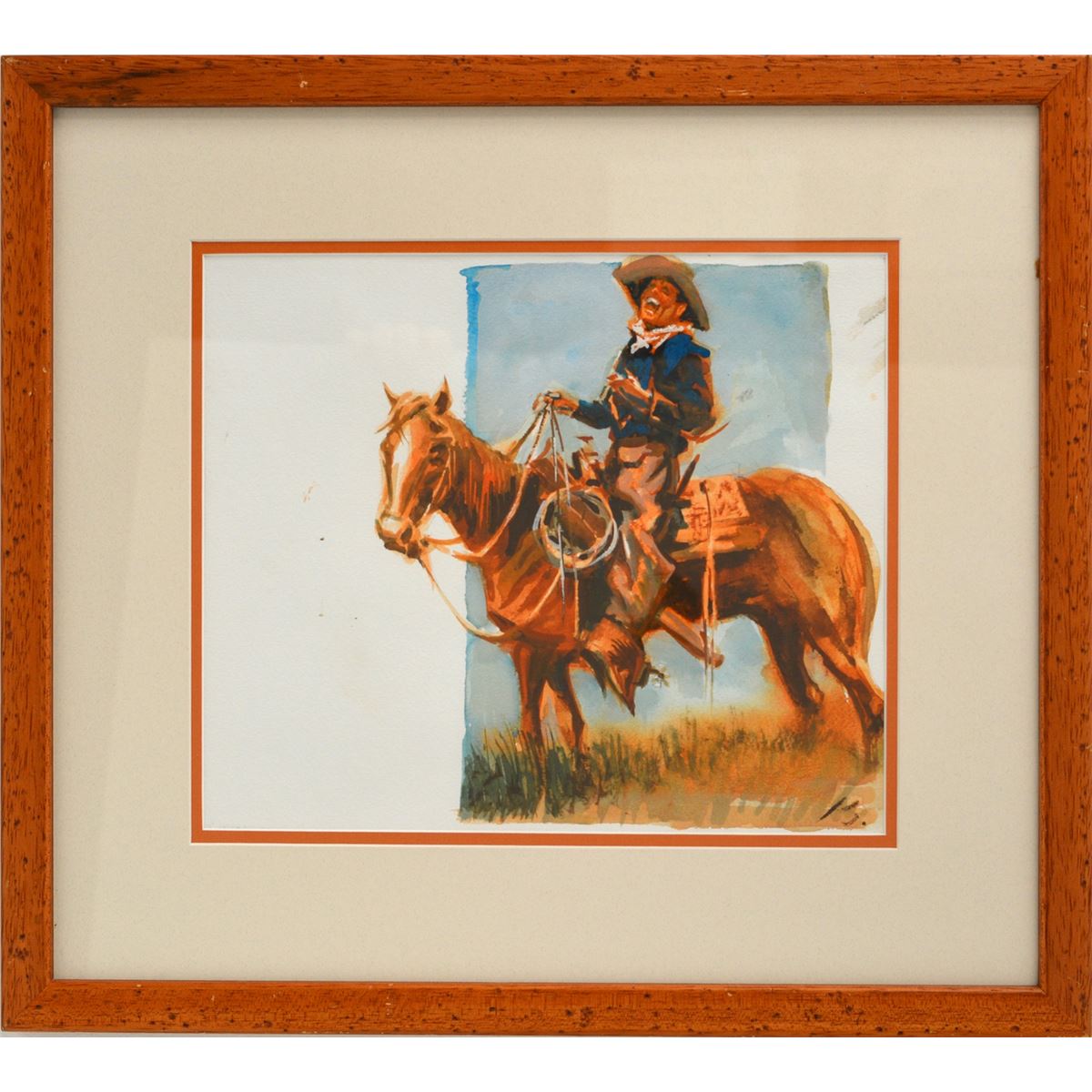 Bob Boze Bell (b. 1946). Curly Bill. 11" x 13" Gouache. Signed lower right . Framed to 18" x 20".