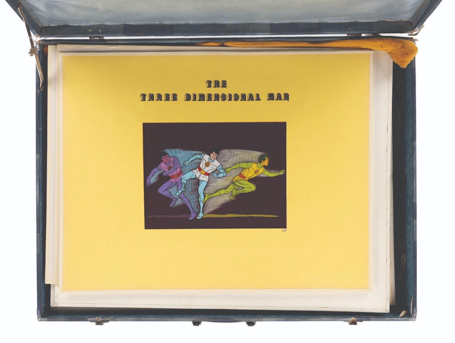 The case also holds a three board pitch deck for Clampett’s “The Three Dimensional Man”, a series inspired by science fiction and the films of Douglas Fairbanks Jr. These 20.25” x 26” boards display three dynamic cels of the series, each measuring up to 16” x 13”.