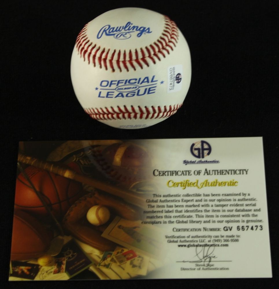 Rawlings Official League baseball. Hand-signed on the sweet spot in blue ink by Bob Doerr (Red Sox HOF). Includes a Global Authentics (GA) hologram and matching COA for authenticity purposes.