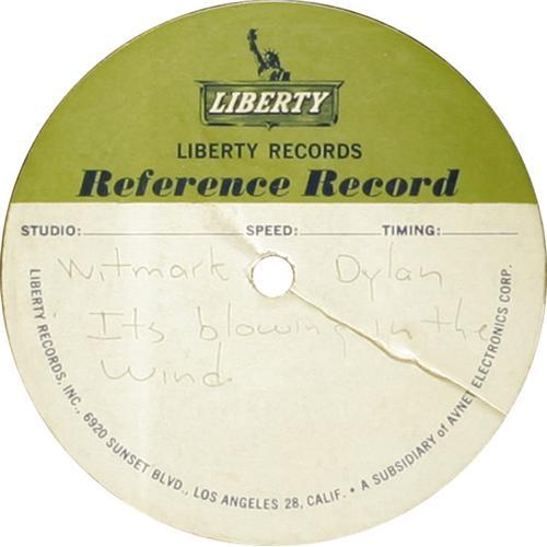 <B>Bob Dylan "It's Blowing In The Wind" Acetate (1963).</B></I> This 10" acetate has a different studio take of the folk classic, with Dylan coughing between vocals and <I>sans</B></I> harmonica. Very rare. Condition: VG 5.<BR><BR><b>Shipping:</b> Recordings (<a target="_blank" href="http://www.heritageauctions.com/common/shipping.php">view shipping information</a>)