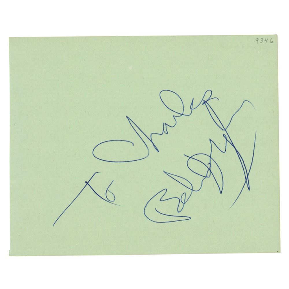 Scarce ballpoint signature and inscription, "To Charles, Bob Dylan,†on a light green 5.5 x 4.5 album page. In very fine condition.