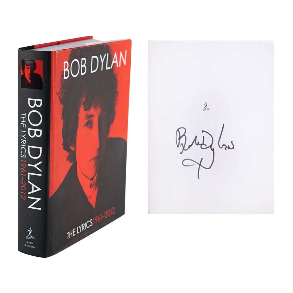 Signed book: Bob Dylan: The Lyrics, 1961–2012. First edition, first printing. NY: Simon & Schuster, 2016. Hardcover with dust jacket, 8.25 x 10.25, 679 pages. Signed on a free end page in black felt tip, "Bob Dylan." In fine condition. Known and revered for his brilliant lyrics, Dylan was awarded the 2016 Nobel Prize in Literature for 'having created new poetic expressions within the great American song tradition.' A marvelous, comprehensive volume that showcases Dylan's excellence in songwriting.