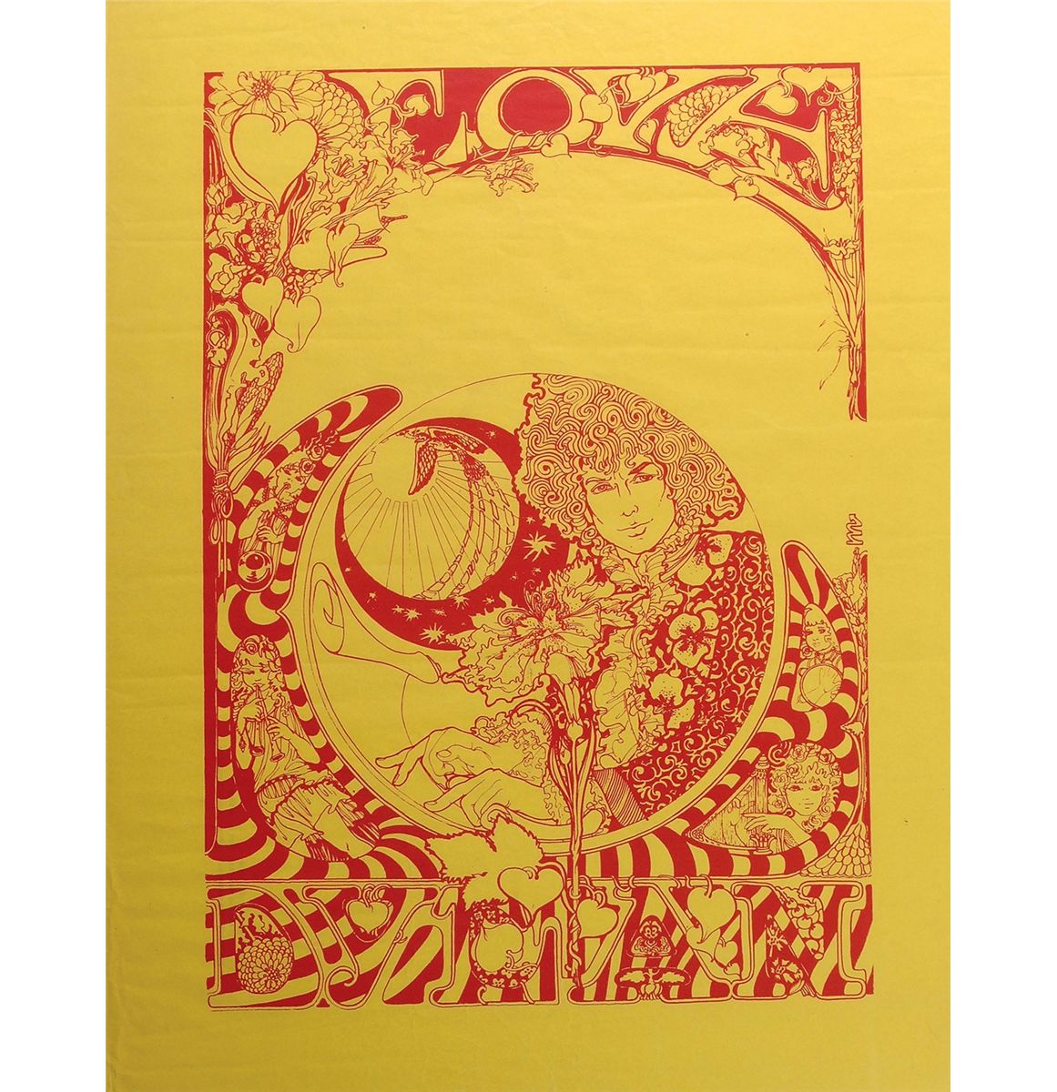Unissued psychedelic concert poster for Dylan’s performances at the Royal Albert Hall on May 26 and 27, 1966. Poster measures 17.5 x 22.5, was designed by Marijke Koger (and so stamped on the reverse), and is missing the promotional information in the upper blank portion. In fine condition, with some scattered light wrinkles. Rolled.