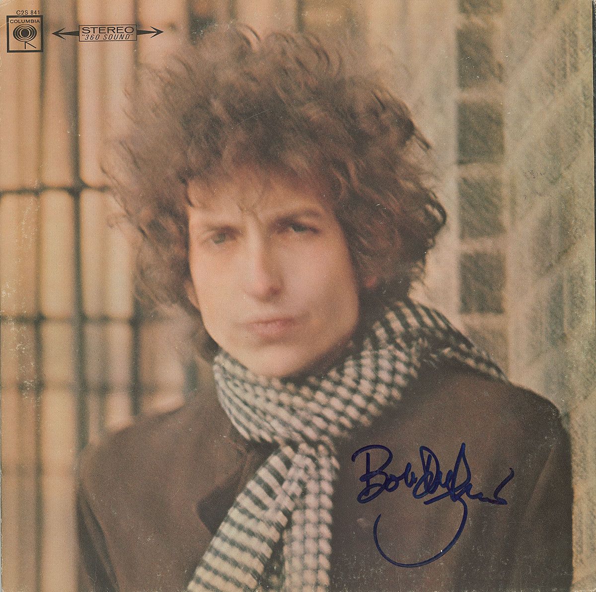 Blonde on Blonde album signed in person on the front cover in blue felt tip. In fine condition. The record is not included. Originally obtained by in-person specialist Mike Wehrmann.