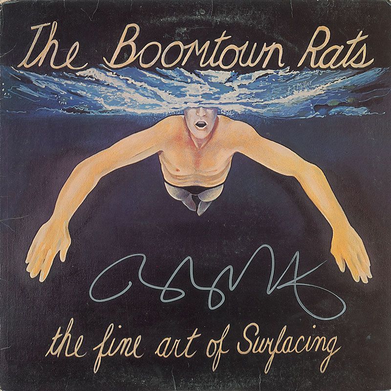 The Fine Art of Surfacing album signed in silver ink by Geldof. In fine condition, with a spot of residue to top front cover, a few creases to borders, and wear to corners. The record is included. Accompanied by a full letter of authenticity from Roger Epperson/REAL.