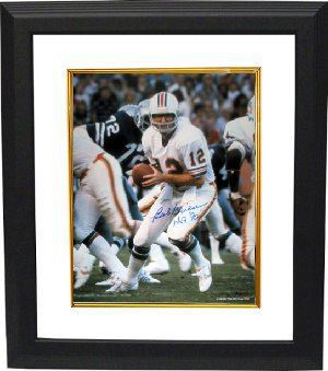 Bob Griese was drafted in 1967 by the Miami Dolphins. Griese led the Dolphins to three consecutive Super Bowl appearances, including two Super Bowl victories (VII and VIII). Griese's talents eventually resulted in his induction to the College Football Hall of Fame and the Indiana Football Hall of Fame in 1984 and the Pro Football Hall of Fame in 1990. Bob Griese has hand autographed this Miami Dolphins 16x20 Photo with HOF90 inscription. Custom White Mat and Premium Black Frame as shown. Certificate of Authenticity from Athlon Sports.
