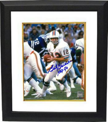 Bob Griese was drafted in 1967 by the Miami Dolphins. Griese led the Dolphins to three consecutive Super Bowl appearances, including two Super Bowl victories (VII and VIII). Griese's talents eventually resulted in his induction to the College Football Hall of Fame and the Indiana Football Hall of Fame in 1984 and the Pro Football Hall of Fame in 1990. Bob Griese has hand autographed this Miami Dolphins 8x10 Color Photo with HOF 90 Inscription. NSD Hologram and Certificate of Authenticity from Athlon Sports. Custom White Mat and Premium Black Color Framed as shown.