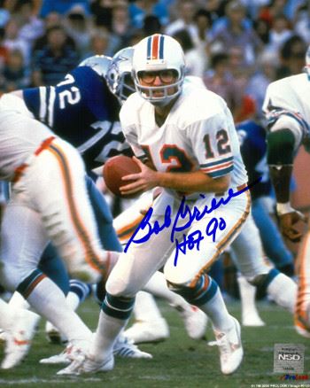 Bob Griese was drafted in 1967 by the Miami Dolphins. Griese led the Dolphins to three consecutive Super Bowl appearances, including two Super Bowl victories (VII and VIII). Griese's talents eventually resulted in his induction to the College Football Hall of Fame and the Indiana Football Hall of Fame in 1984 and the Pro Football Hall of Fame in 1990. Bob Griese has hand autographed this Miami Dolphins 8x10 Color Photo with HOF 90 Inscription. NSD Hologram and Certificate of Authenticity from Athlon Sports.