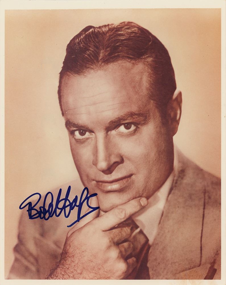 Glossy 8 x 10 close-up photo of Bob Hope, signed in blue felt tip. In fine condition. Originally obtained by in-person specialist Mike Wehrmann.