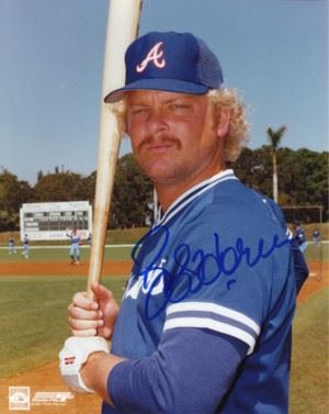 Bob Horner was drafted by Atlanta as the first overall pick of the 1978 amateur draft and made his debut in the same year. He is one of only a handful of players ever to go directly to the starting lineup in the major leagues without spending a day in the minor leagues. He won the National League Rookie of the Year honors over Ozzie Smith. In his ten-year Major League career, Horner batted .277 with 218 home runs, 685 RBIs, 560 runs, 1047 hits,169 doubles, 8 triples, 14 stolen bases, a .340 on base percentage, and .499 of slugging average in 1020 games. Bob Horner has hand autographed this Atlanta Braves 8x10 Color Photo. Certificate of Authenticity from Athlon Sports.