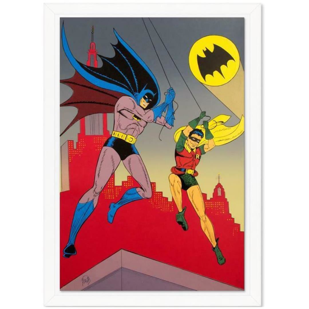 "Batman & Robin" is a 1989 limited edition original lithograph on paper by Bob Kane (1915-1998), creator of the DC comics character. This piece is numbered and hand signed by Bob Kane and comes framed. Includes Certificate of Authenticity. This item requires special handling and may have a longer than usual turnaround. Measures approximtately 42" x 30" (framed), 36" x 24" (image).