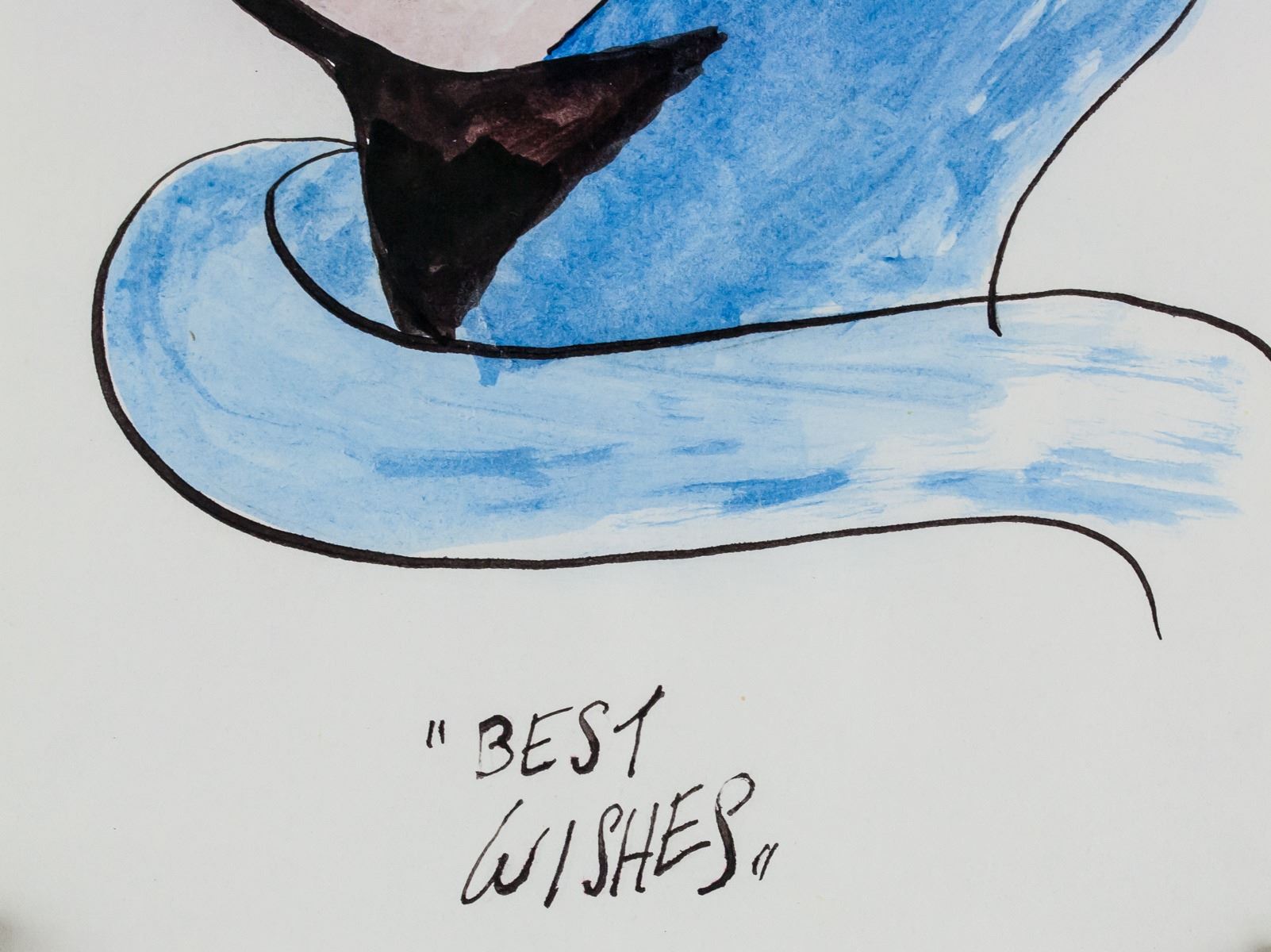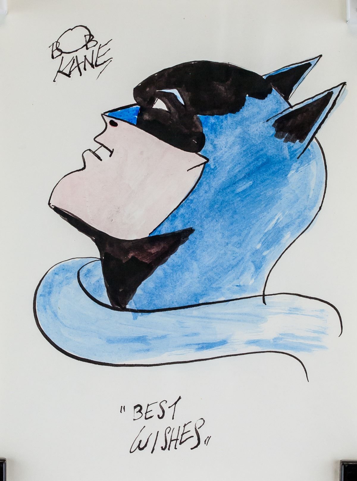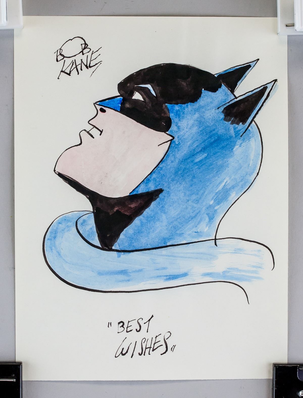 Mixed media on paper. Featuring Batman. Inscribed "Best Wishes" and signed BOB KANE on the upper left corner. Attributed to Bob Kane (1915-1998, American). 22.5 x 17 cm (9 x 6.75 in). PROVENANCE: This lot carries limited provenance from an Upper New York estate