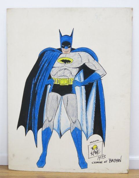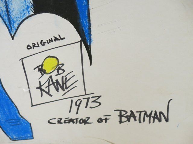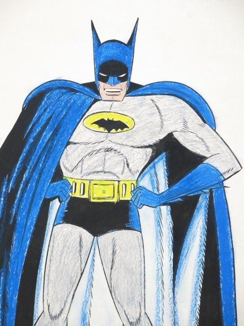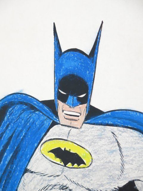 Colored chalks & black marker on board. Unframed. Signed and dated lower right. Original 1973 creator of Batman. Approx. 40" H x 30" W. From a NYC collector's 40 year compilation. Some damages & wear.