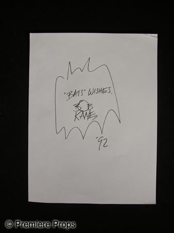 Drawing of the Batman symbol, drawn and signed by creator Bob Kane. Dated 1992. (12x9)