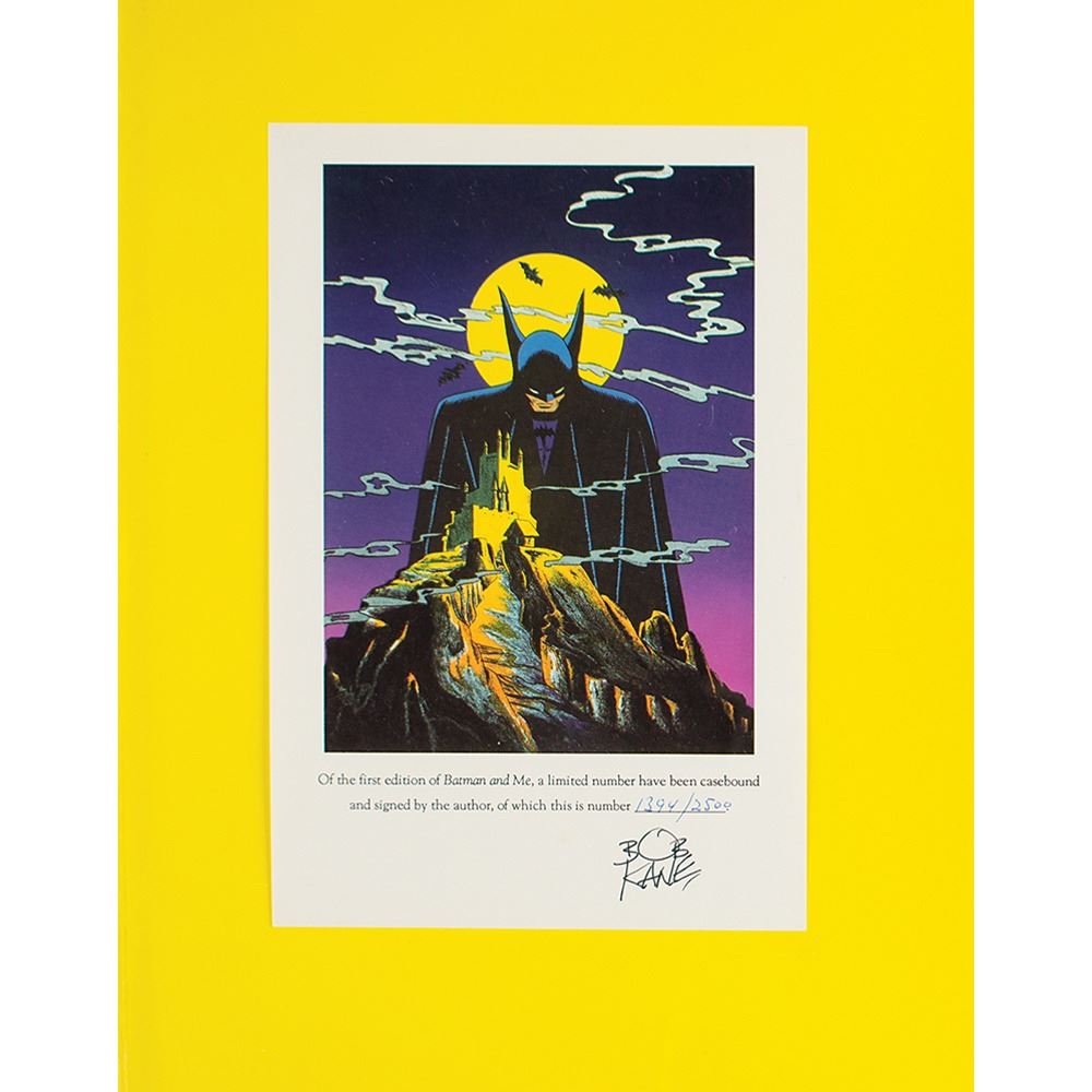 Signed book: Batman & Me. Limited first edition, numbered 1394/2500. Forestville, CA: Eclipse Books, 1989. Hardcover with dust jacket, 9 x 11.25, 155 pages. Signed on the colophon in black ink by Bob Kane. In fine condition, with light wear to the dust jacket.