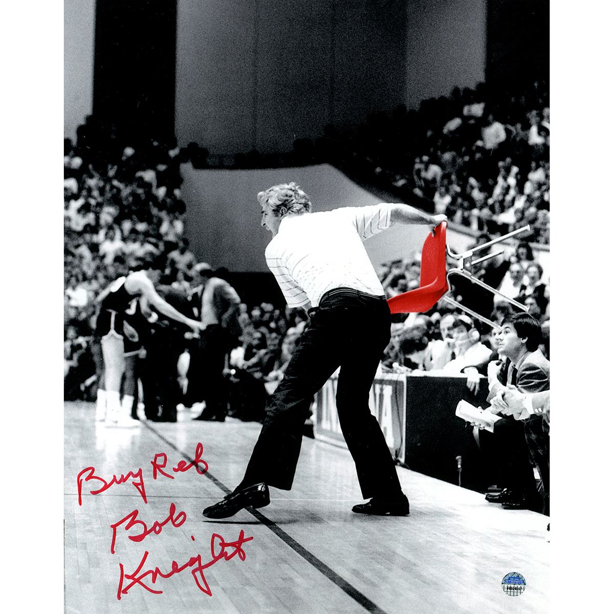 Bob Knight Signed Throwing Chair B&W w/ Red Chair 8x10 Photo w/ "Bury Ref" Insc.