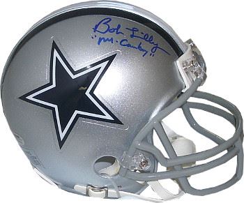 Bob Lilly was an All-Pro seven times, and was selected to play in 11 Pro Bowl games with the Dallas Cowboys. Affectionately known as "Mr. Cowboy," his name was the first inscribed in the "Dallas Cowboys Ring of Honor", above Texas Stadium. The Cowboys had a Bob Lilly Day on November 23, 1975, to honor him and make Lilly the first inductee into The Ring of Honor. Lilly was inducted into the Pro Football Hall of Fame in 1980, his first year of eligibility, and was the first player who spent his entire career with the Cowboys to be elected to the Pro Football Hall of Fame. Bob Lilly has hand autographed this Dallas Cowboys Mini Helmet with Mr. Cowboy inscription. Schwartz Sports Hologram and Certificate of Authenticity from Athlon Sports.