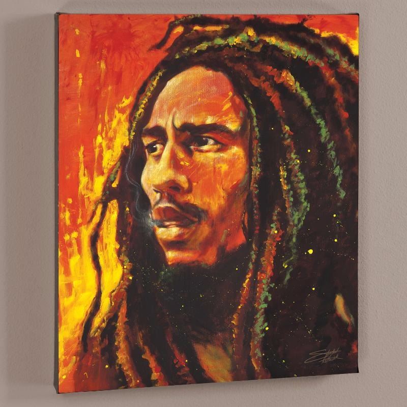 With bright colors and expressive lines, Stephen Fishwick puts a unique spin on pop culture portraits. "Bob Marley" is a limited edition giclee on stretched canvas, numbered and bears the artist's authorized signature. This piece comes gallery wrapped and ready to hang! Includes Certificate of Authenticity! Measures approx. 16" x 20" (image). Retail Price $450.00. PRICE INCUDES FREE SHIPPING IN THE U.S. - SHIPPING WILL BE ADDED TO YOUR INVOICE FOR ALL BUYERS OUTSIDE OF THE U.S.