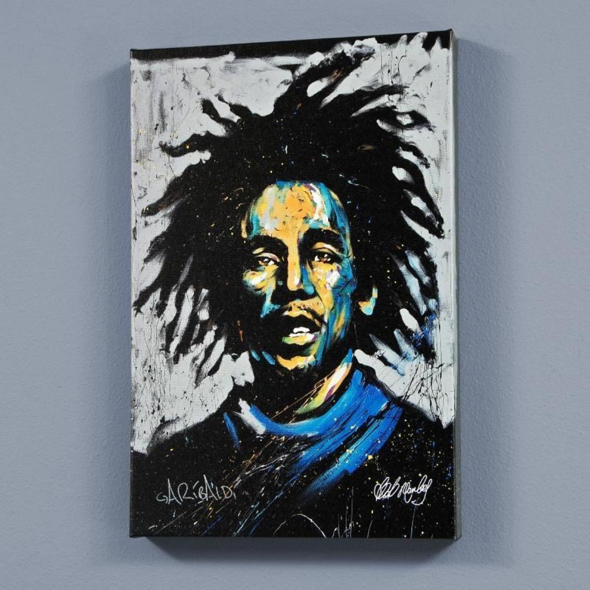 Combining his passions for music and art, David Garibaldi creates stunning visual poetry. "Bob Marley (Redemption)" is a limited edition giclee on stretched canvas, numbered and bearing the artist's authorized signature. This piece comes gallery wrapped. Includes Certificate of Authenticity! Measures approx. 18" x 24" (image).