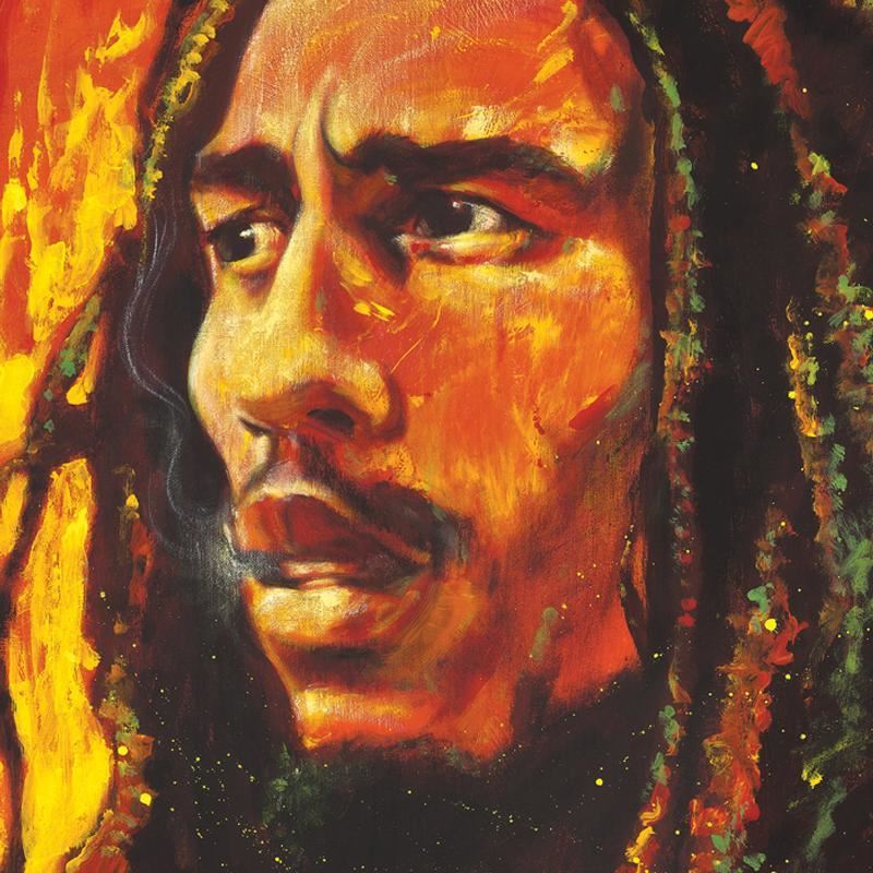 With bright colors and expressive lines, Stephen Fishwick puts a unique spin on pop culture portraits. "Bob Marley" is a limited edition giclee on stretched canvas, numbered and bears the artist's authorized signature. This piece comes gallery wrapped! Includes Certificate of Authenticity! Measures approx. 16" x 20" (image).