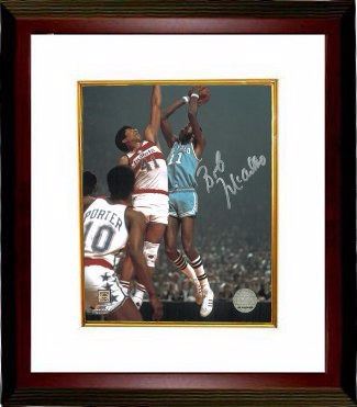 Bob McAdoo spent a fourteen-year career playing the center and power forward positions in the National Basketball Association. McAdoo was a NBA Most Valuable Player and a 5-time NBA All-Star. He won NBA championships in 1982 and 1985. McAdoo is currently an assistant coach for the Miami Heat, with whom he won three more NBA championships in 2006, 2012 and 2013. Bob McAdoo has hand signed this Buffalo Braves 8x10 Photo. Certificate of Authenticity from Athlon Sports. Custom White Mat and Premium Mahogany Frame as shown.