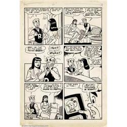 Bob Montana - Original Art for Archie (Issue Unknown) (Archie, 1940s). This page should fill the needs of any collector looking for a vintage Archie piece. It offers a great interaction between Archie and Veronica. The last two pieces from the 1940s sold in auction for more than $20,000 in 2000. It is very rare to have Archie pages offered that are pre-1960. The page is in outstanding condition with minor tanning on the very bottom of the page, but not affecting the art. The piece measures 12.5"x 18".  Important notice: We expect to be auctioning lots at the rate of 200-250 per hour. Sometimes eBay Premier live bid software cannot keep up with that pace, so we strongly recommend that you place a realistic proxy bid now as insurance to avoid disappointment. Also please note that all Heritage/CAA lots purchased through eBay Premier carry a 20% Buyer's Premium.
