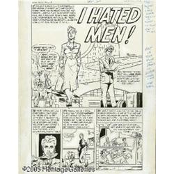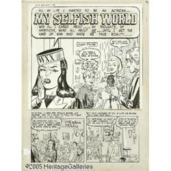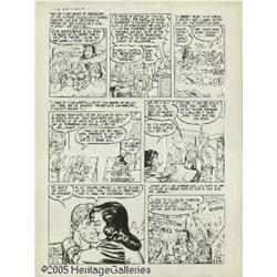<B>Bob Powell and Tom Gill (attributed) - Original Art for Love Advice #1, Complete Stories, Group of 2 (Harvey, 1949).</B></I> A real treat for fans of high drama and soapy love tales, this group contains two complete stories, featuring art by some of the best. "My Selfish World," is an eight pager, by Tom Gill, about a actress whose self-centered life ends when she meets the kind of man who made her face reality. The first panel is a piece of replacement art, which is not attached, which reveals an interesting alternative pencil layout to the same frame. The next piece in this starry-eyed soiree, is a seven page reminiscence about the reformation of a manhater, titled "I Hated Men!," by Bob Powell. All this lovely art is labeled to be used for <B>Love Problems and Advice Illustrated</B></I>, but the title was more than likely to have been changed to <B>Love Lessons</B></I>, which ran from 1949 to 1950. The art measures 15" x 19" with a 12" x 18" image area. The work shows some very minimal aging, and white-out usage, but overall the work is in Excellent condition. Get out your tissues, you're in for a treat!