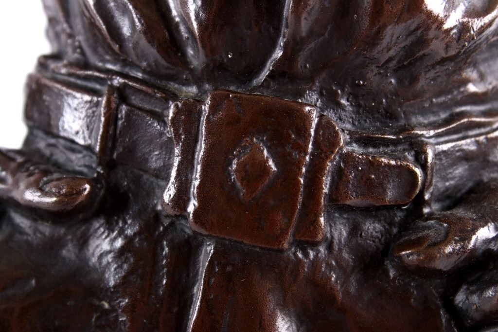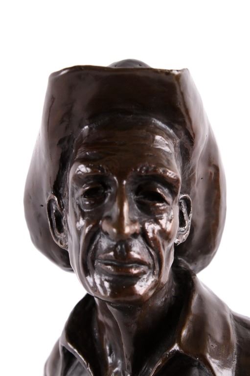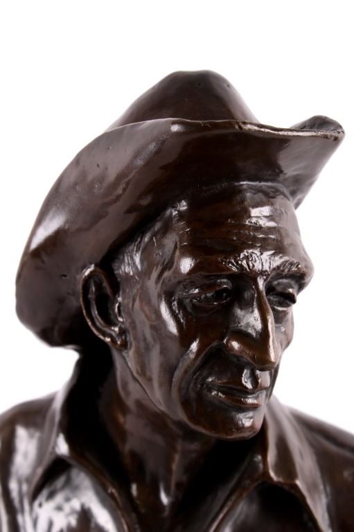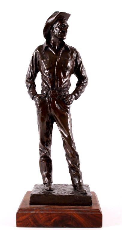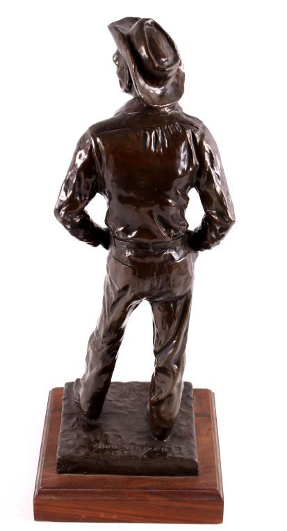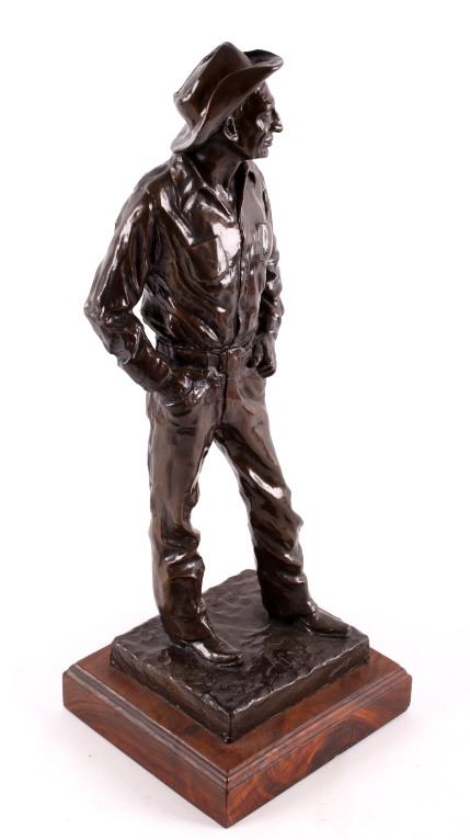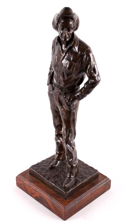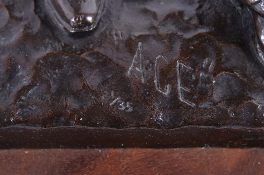 For your consideration is a Bob Scriver original bronze tiled "Ace Powell" and numbered 21/35. obert Macfie Scriver (1914-1999) was born in Browning, Montana (in the heart of the Blackfoot Indian Reservation) in 1914. Scriver began sculpting using taxidermy to learn his craft of making wildlife bronzes. The subject matter Ace Powell was an American painter, sculptor, and etcher of genre scenes and imagery relating to Indians, cowboys, horses, and wildlife. His artwork was influenced by that of fellow Montana artist Charles M. Russell. Powell's lifetime body of work consists of between 12,000 and 15,000 artworks. Although he preferred working with oil paints, he also produced a large number of watercolor paintings and drawings, as well as a number of works in bronze. This bronze is signed by the artist and dated 1959. The piece is title "Ace" and numbered 21/35. It measures 8" x 7.5" x 21".