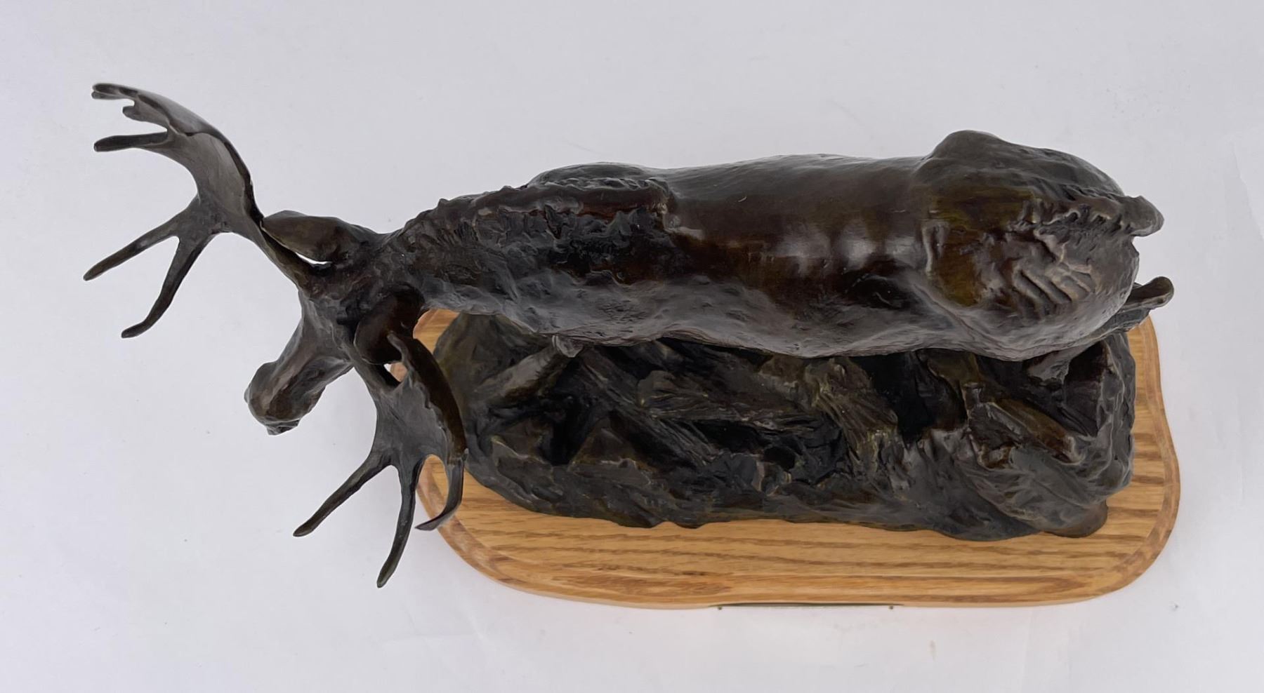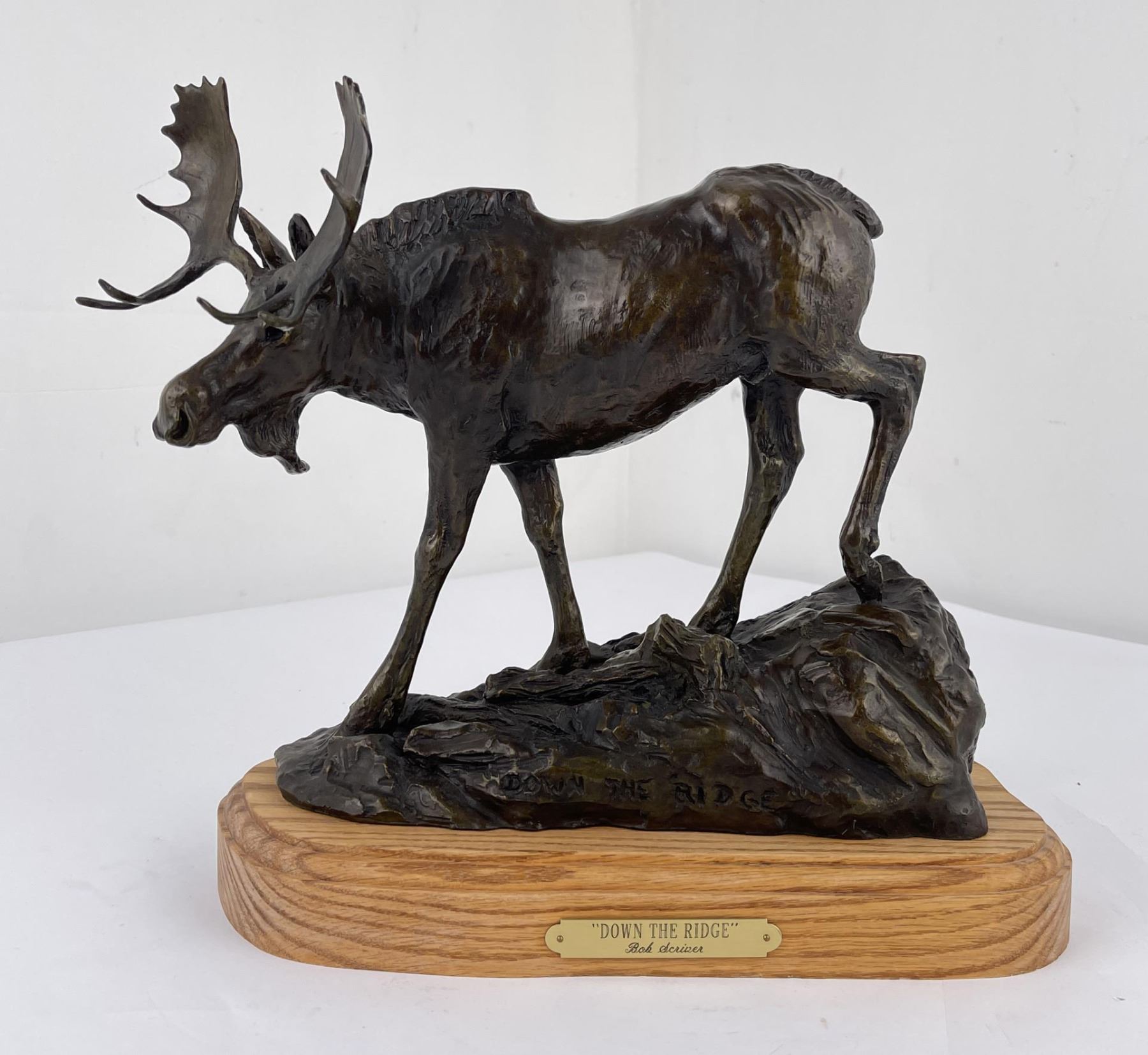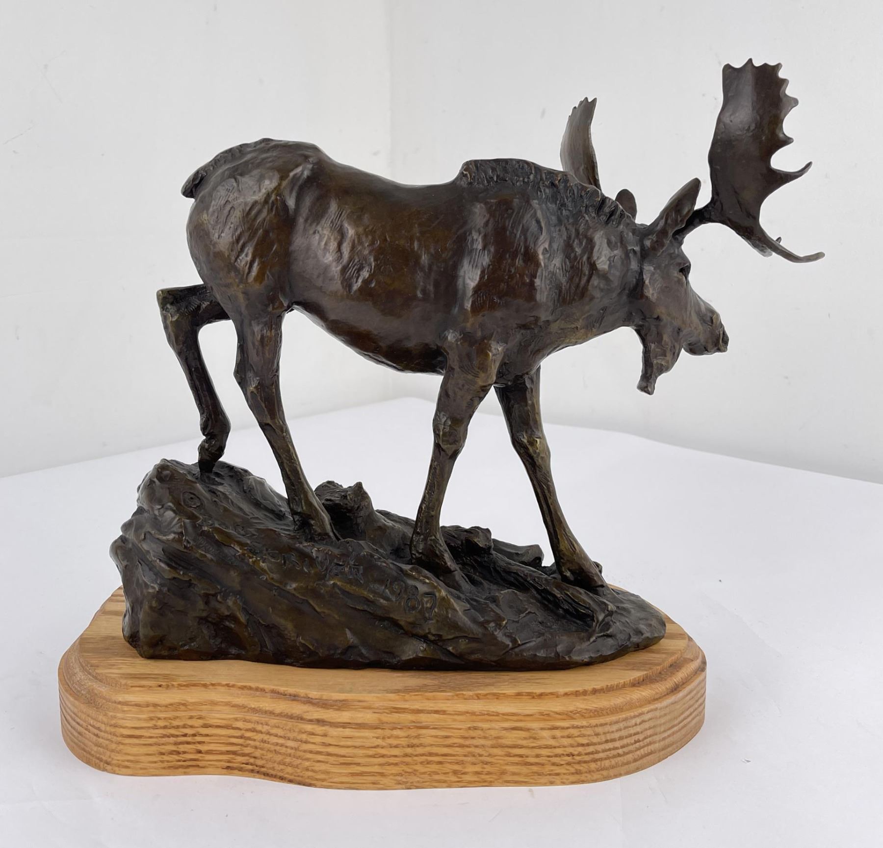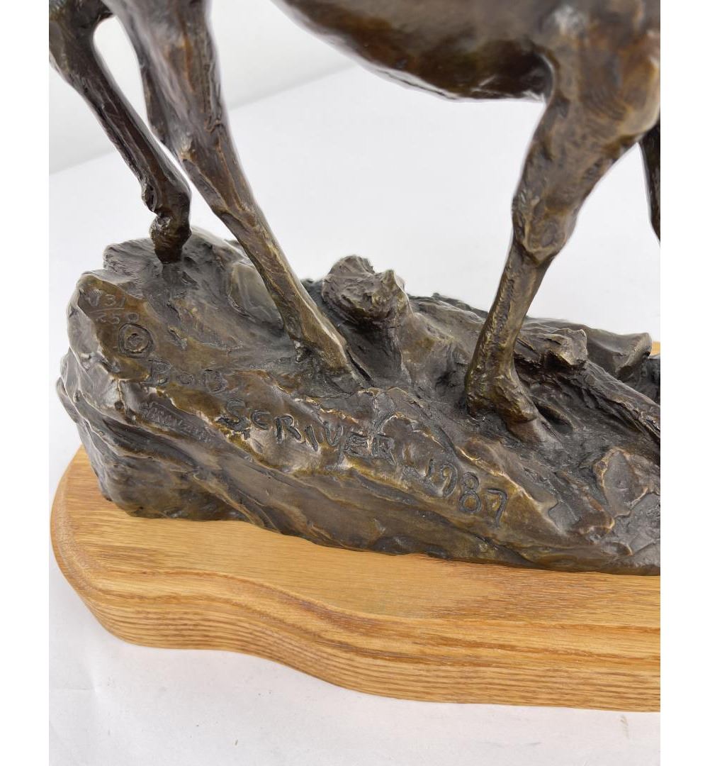 Approximately 12" tall. Bob (Robert Macfie) Scriver (1914 - 1999) was active/lived in Montana. Bob Scriver is known for Animal and western sculpture. Bob Scriver was an elected member in both the Cowboy Artists of America organization and the National Academy of Western Art. He was a member of the Salmagundi Club and was accepted for membership in the National Sculpture Society. Scriver created heroic sculptures in Montana of the expedition of Lewis and Clark, and in Wyoming of the legendary Buffalo Bill. His Cowboy works include a heroic work of Bill Linderman at the Cowboy Hall of Fame in Oklahoma and his "Rodeo In Bronze" series, one of four belonging to the Devonian Institute in Canada. Scriver was commissioned to do such pieces as a Montana Trapper and belt buckle for the Montana Historical Society to help raise funds to purchase the C.M. Russell painting, When the Land Belonged to God, which raised $96,000.00. In 1981, for the Winchester Arms Company, he was also commissioned to do a famous logo called, The Winchester Rider. This set a new record for contemporary sculptors with gross sales totaling over one million dollars. This edition of 250 was completely sold out in 30 days from the time of National advertising. Scriver's art depicts a sense of freedom that has been lost by the Indian and is seemingly being lost by the cowboy. The Late Dr. Harold McCracken, Director Emeritus of the Whitney Gallery of Western Art, was quoted in the forward of Scriver's book NO MORE BUFFALO as calling Scriver: "America's foremost sculptor today-bar none". Scriver died January 29,1999. He has left behind him stories, and dreams of the West....in bronze.
