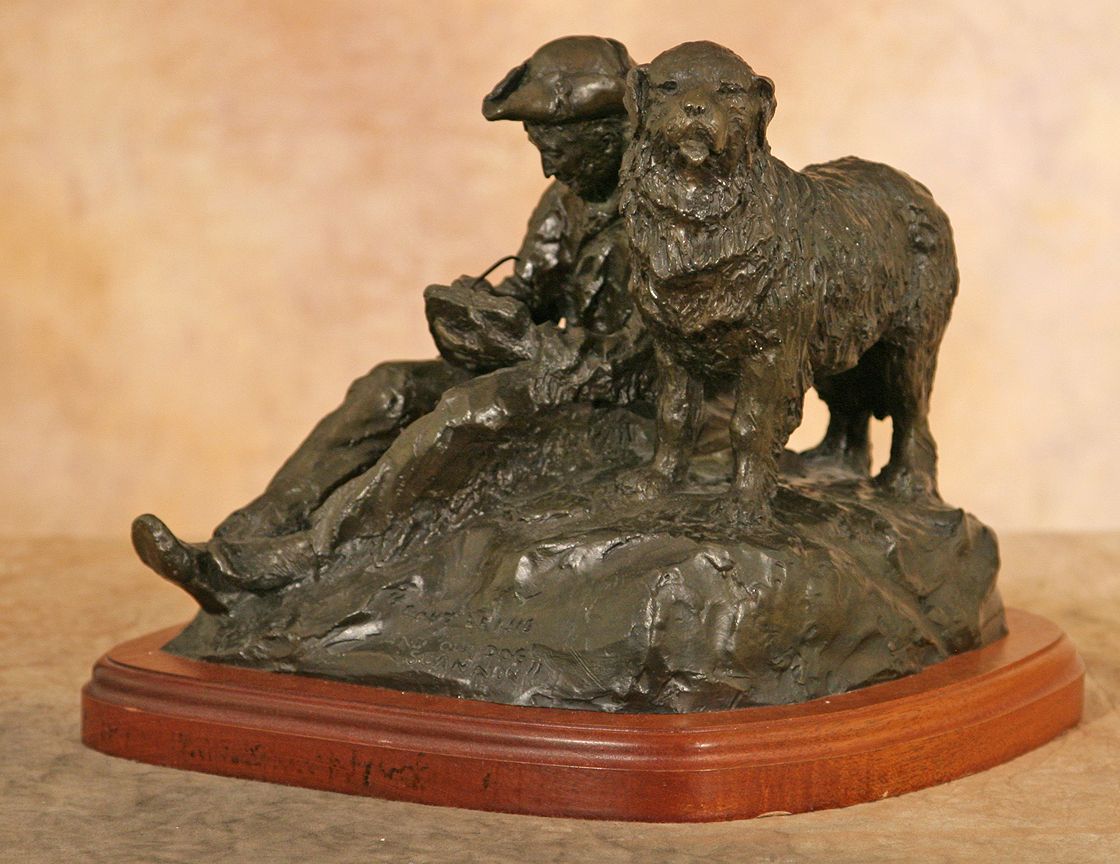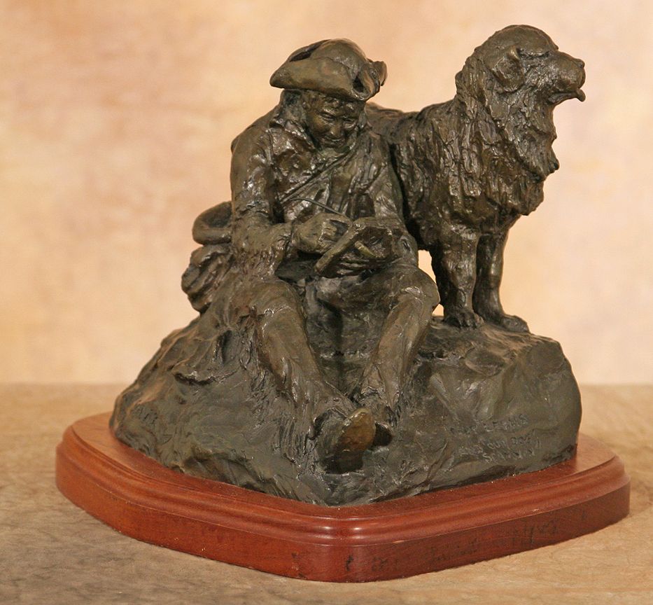Bob Scriver (1914-1999) CA. Captain Lewis And Our Dog Scannon. 7 ½" x 8" x 8" bronze #18/150. Arrowhead Bronze Foundry. Inscribed: © BOB SCRIVER, 1976. (est. $1,500-2,500). CONDITION REPORTS: www.auctioninsantafe.com/docs/cr2012.pdf