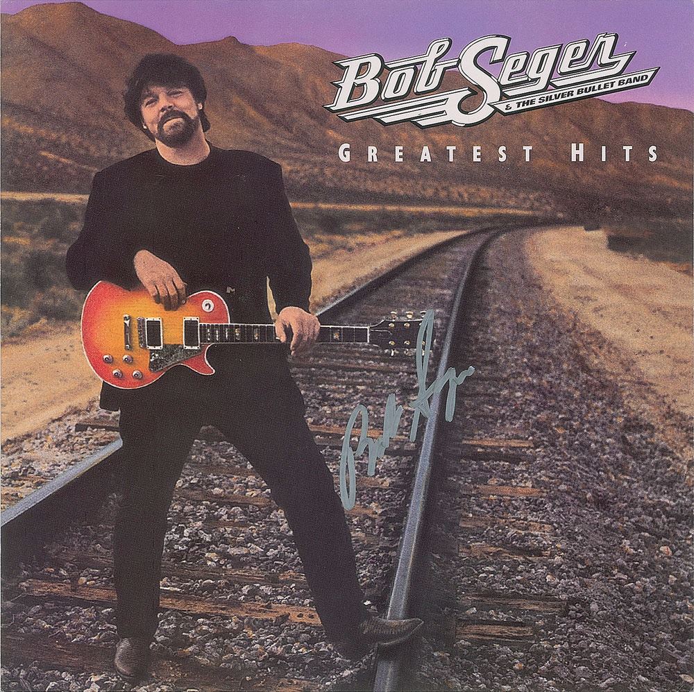 Greatest Hits album flat signed on the front in silver ink by Seger. In fine condition. The record is not included. Consignor notes that the signature was obtained at the Ritz Carlton in Cleveland, Ohio, after Seger's show at the Gund Arena.