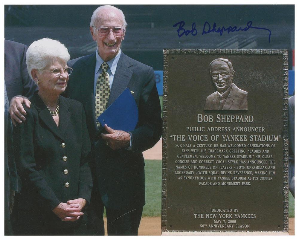 Color glossy 10 x 8 photo of Sheppard at the presentation of his plaque in Monument Park, signed in blue felt tip. In fine condition.
