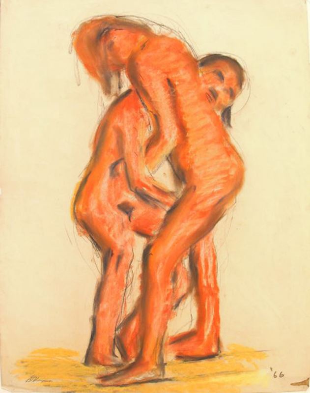 Bob Thompson, Two Nudes I, Pastel Drawing