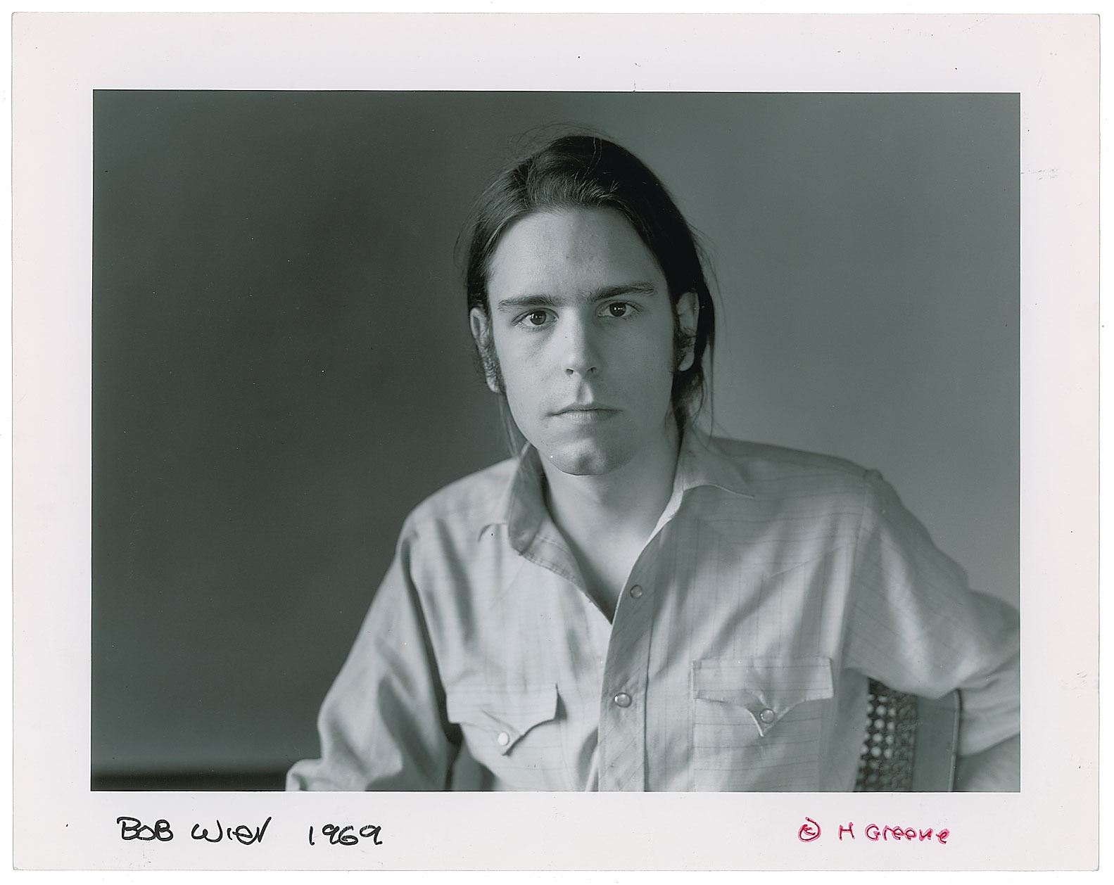 Fantastic original semi-glossy 14 x 11 silver gelatin close-up photo of Bob Weir, taken in 1969 by legendary San Francisco photographer Herb Greene, who has titled and signed the photograph with his copyright notice in the lower border. In fine condition.