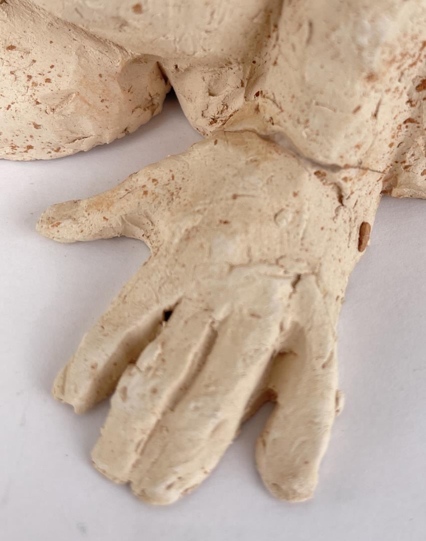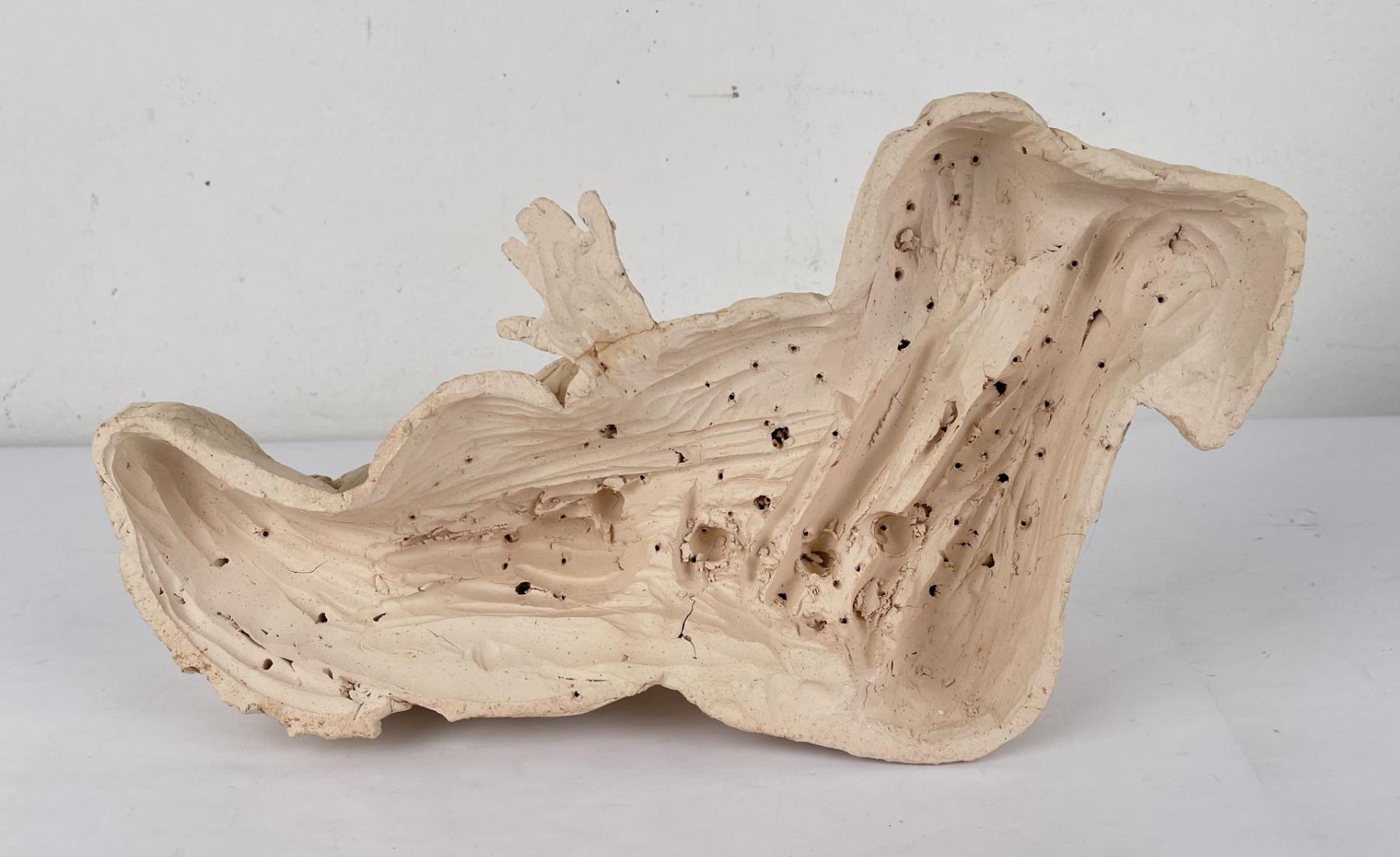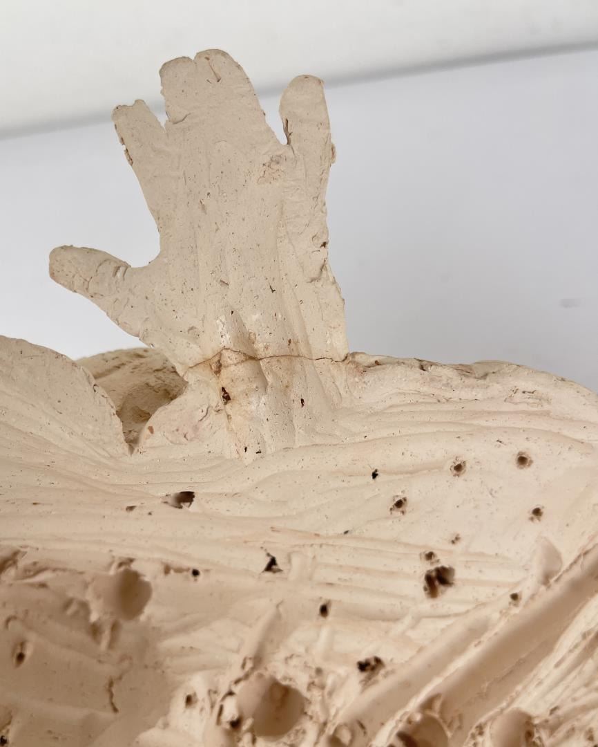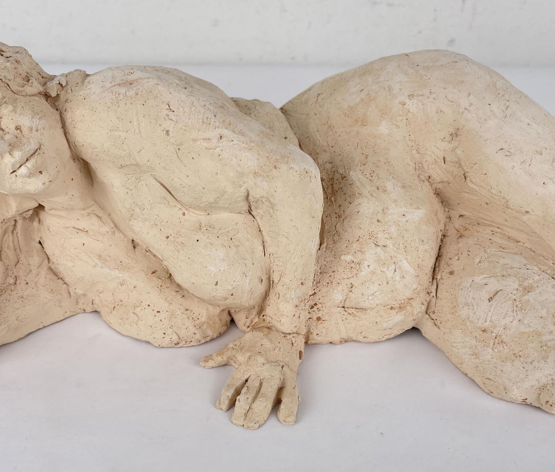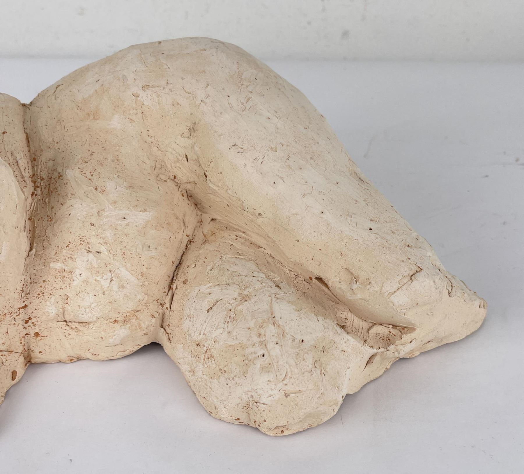 Hand has been broken and repaired as shown. 15" long, 6" tall, 8" wide. Bobbe Gentry (20th century) was active/lived in Texas. Bobbe Gentry is known for Sculptor-classical figure. Originally a painter and later a ceramist, she combined the two art forms to create richly colored, textured three-dimensional figures with flowing composition. Gentry is a resident of Poetry, Texas and was educated at Sam Houston State University in Texas, Newport College of William and Mary, the University of Connecticut, and Southern Methodist University in Texas. She has been a student of Grant Speed, Stanley Bleifeld, Garland Weeks, and Fritz White. She served as Secretary of the Texas Sculpture Association, and was Vice-President of the Creative Arts Center of Dallas.