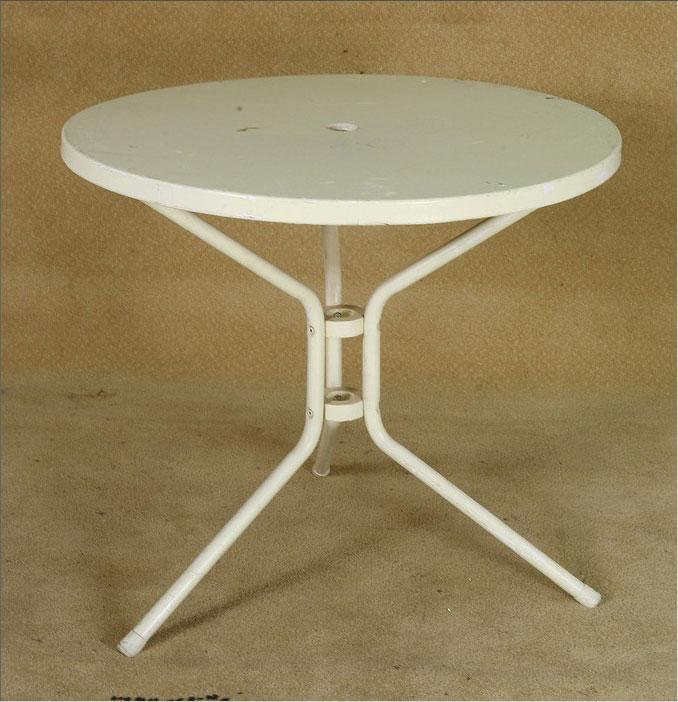 White Metal Patio Table Used as a Movie Prop in the 2006 film "Bobby" starring Emilio Estevez. #2091905 Dimensions: 28"x32"x32"