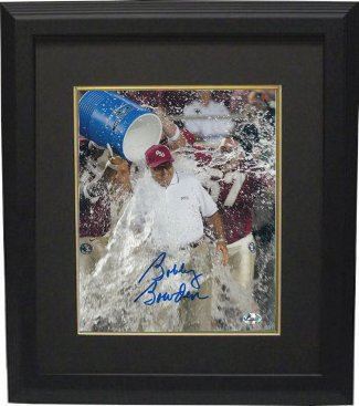 Bobby Bowden coached the Florida State Seminoles football team from the 1976 to 2009 seasons. During his time at Florida State, Bowden led FSU to an Associated Press and Coaches Poll National Title in 1993 and a BCS National Championship National Title in 1999, as well as twelve Atlantic Coast Conference championships since FSU joined the conference in 1991. His final coaching appearance was the 2010 Gator Bowl game on January 1 with a 33-21 victory over his former program, West Virginia. Bobby Bowden has hand autographed this Florida Seminoles Powerade Dunk 8x10 Photo. Custom Black Mat and Black Frame as shown. Certificate of Authenticity from Athlon Sports.