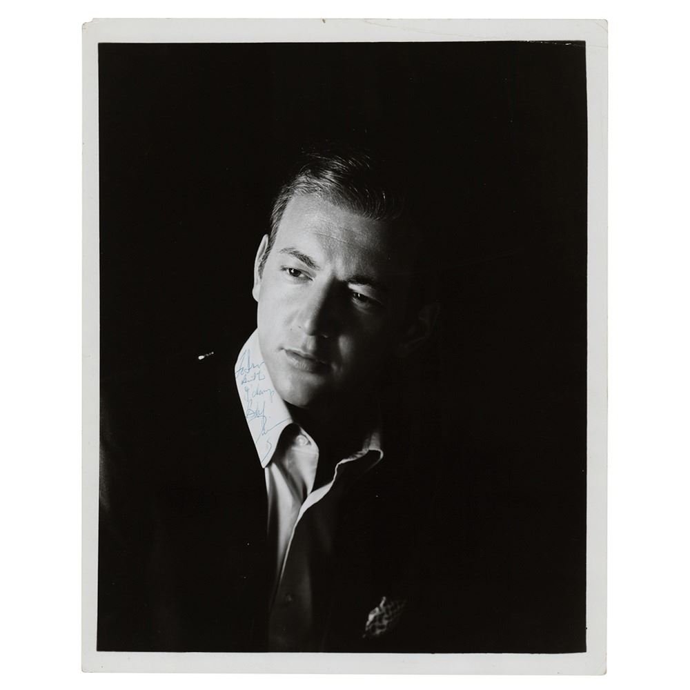 Striking glossy 8 x 10 photo of the 'Beyond the Sea' singer, signed and inscribed in blue ballpoint, "To Irv, Best to you always, Bobby Darin. In very good condition, with scattered creases, some emulsion irregularity, and two light bends (one passing across Darin's face).