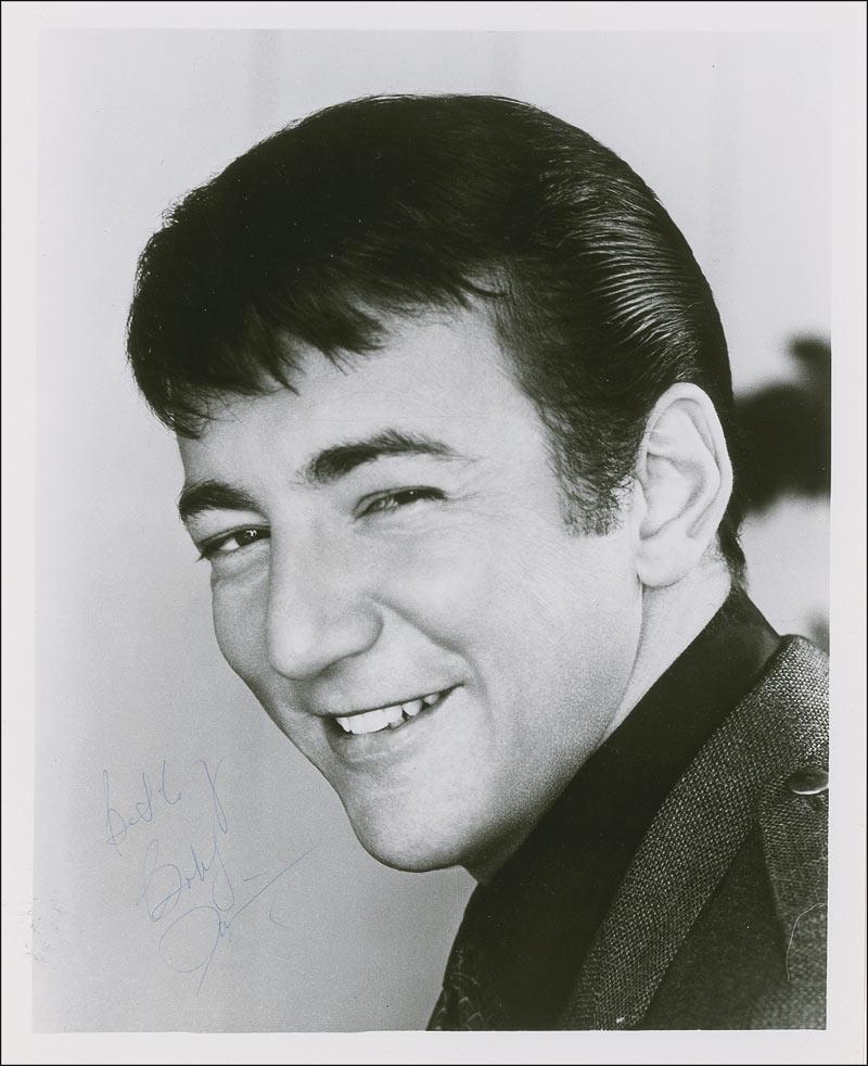 Versatile and popular American performer (1936–1973) who died at the age of 37 from complications following surgery for a faulty heart valve. Glossy 8 x 10 head-and-shoulders photo, signed in blue ballpoint, “Best to you, Bobby Darin.” In fine condition, with a few scattered light surface creases.