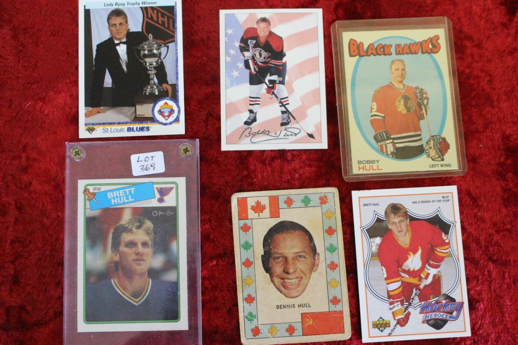 Bobby Hull, Brett Hull & Dennis Hull Cards (6)