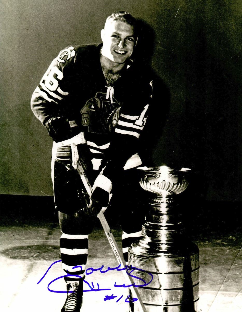 Bobby Hull signed Chicago Blackhawks on ice with Stanley Cup 11x14 photo. Item comes with a Schwartz Sports Memorabilia tamper-proof numbered hologram and Certificate of Authenticity which can be verified online.