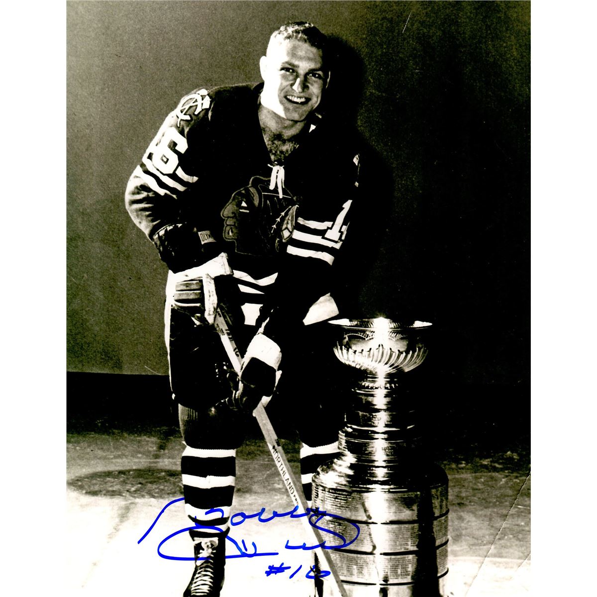 Bobby Hull signed Chicago Blackhawks on ice with Stanley Cup 11x14 photo. Item comes with a Schwartz Sports Memorabilia tamper-proof numbered hologram and Certificate of Authenticity which can be verified online.