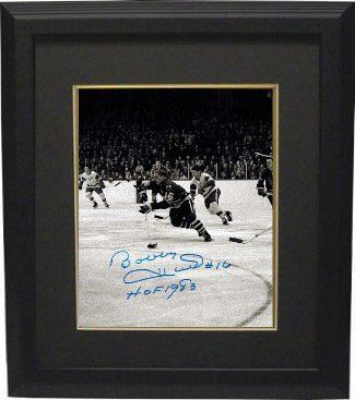 Bobby Hull is regarded as one of the greatest ice hockey players of all time and perhaps the greatest left winger to ever play the game. Hull was famous for his blonde hair, blinding skating speed, and having the fastest shot, earning him the nickname "the Golden Jet". He possessed the most feared slapshot of his day. In his 23 years in the National Hockey League and World Hockey Association, he played for the Chicago Black Hawks, Winnipeg Jets and Hartford Whalers. Hull was elected to the Hockey Hall of Fame in 1983. Bobby Hull has hand signed this Vintage B&W Chicago Blackhawks 8x10 Photo with HOF 1983 inscription. Schwartz Sports Hologram and Certificate of Authenticity from Athlon Sports. Custom Black Mat and Premium Black Frame as shown.