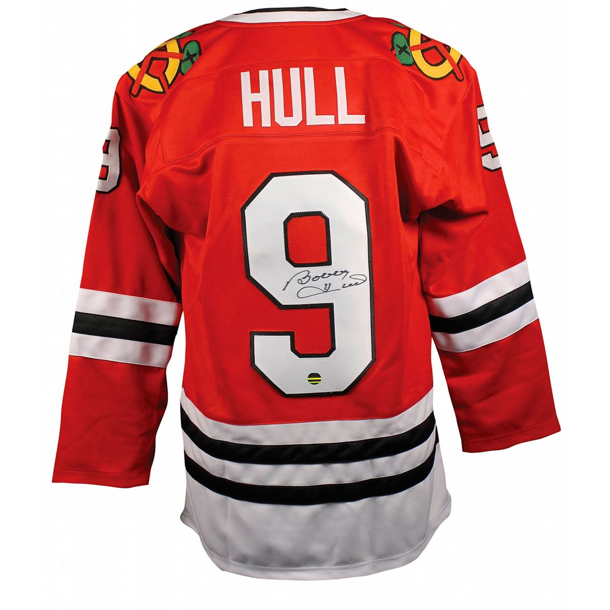 Replica Chicago Blackhawks hockey jersey, with sewn on letters and numbers, signed in black felt tip on the number on the back. In fine condition.