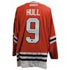 Official CCM replica Chicago Blackhawks hockey jersey, with sewn on letters and numbers, signed in black felt tip on the number on the back, “Bobby Hull, The Golden Jet.” In very fine condition with a Bobby Hull Authenticated label affixed to the number.