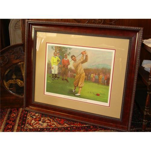 Wonderful print of Bobby Jones. Bobby Jones won 13 Major Championships during his 7 years as an Amateur. His Grand Slam of Golf was completed in 1930.He is flanked by Water Hagen,Tommy D. Armour, and Gene Sarazen. Together these four have won a total of 33 major titles.