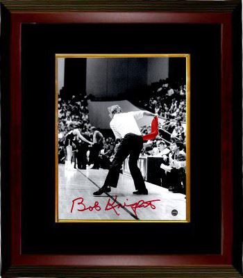 Bob Knight also known as "The General" won 902 career NCAA Games while coaching at West Point (1965-71), University of Indiana (1971-2000), and Texas Tech (2001-08). His 902 career wins are second most all-time only behind Coach K's career total at Duke. While coaching at Indiana Knight led his team to three National Titles, eleven Big Ten Conference Championships, he also won NCAA Coach of the Year four times. His career record was 902-371, and he was one of the most innovative coaches as he perfected the motion offense. Commemorate "The General" with this hand signed Indiana Hoosiers 8x10 Black & White Photo Throwing a Red Chair signed in Red. Steiner Sports Hologram and Certificate of Authenticity. Custom Black Mat and Premium Mahogany Frame as shown.