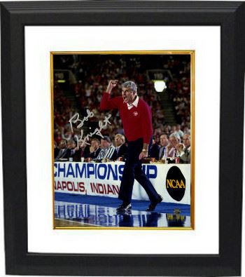 Bob Knight also known as "The General" won 902 career NCAA Games while coaching at West Point (1965-71), University of Indiana (1971-2000), and Texas Tech (2001-08). His 902 career wins are second most all-time only behind Coach K's career total at Duke. While coaching at Indiana Knight led his team to three National Titles, eleven Big Ten Conference Championships, he also won NCAA Coach of the Year four times. His career record was 902-371, and he was one of the most innovative coaches as he perfected the motion offense. Commemorate "The General" with this hand signed Indiana Hoosiers 8x10 Color Photo Red Sweater Yell signed in silver. Steiner Sports Hologram and Certificate of Authenticity. Custom White Mat and Premium Black Color Framed as shown.