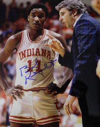 Bob Knight also known as "The General" won 902 career NCAA Games while coaching at West Point (1965-71), University of Indiana (1971-2000), and Texas Tech (2001-08). His 902 career wins are second most all-time only behind Coach K's career total at Duke. While coaching at Indiana Knight led his team to three National Titles, eleven Big Ten Conference Championships, he also won NCAA Coach of the Year four times. His career record was 902-371, and he was one of the most innovative coaches as he perfected the motion offense. Commemorate "The General" with this hand signed Indiana Hoosiers 8x10 Photo with Isiah Thomas. Steiner Sports Hologram and Certificate of Authenticity.