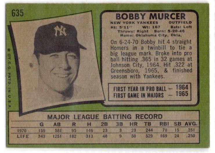 Bobby Murcer 1971 Topps Card number 635